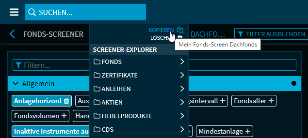 - Wählen Sie im geöffneten Screen im Screener-Explorer den Befehl KOPIEREN.