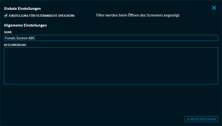 Geben Sie im erscheinenden Dialogfenster "Globale Einstellungen" den gewünschten Namen des Screens und ggf. eine Beschreibung ein.