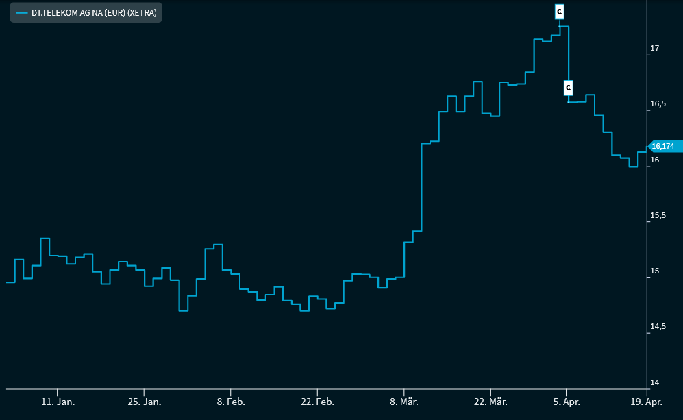 Der Charttyp "Stufen" stellt die Kurszeitreihe als Stufen dar.