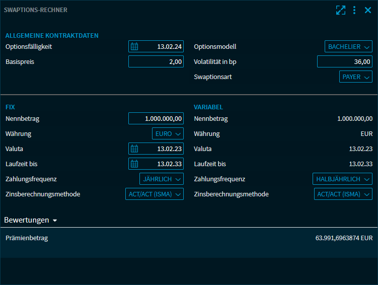 Mit dem Swaptions-Rechner können Zinsswaps für Optionen berechnet werden.