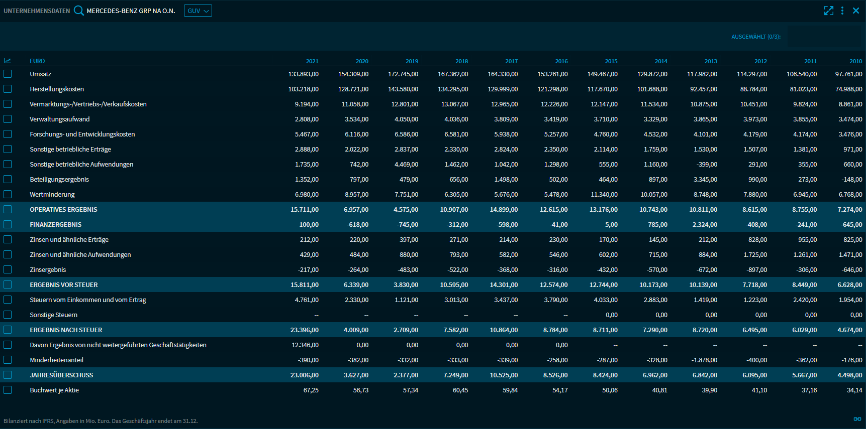 Wählen Sie den Bereich "GuV", um die Gewinn- und Verlustrechnungen der letzten 5 Jahre anzuzeigen.