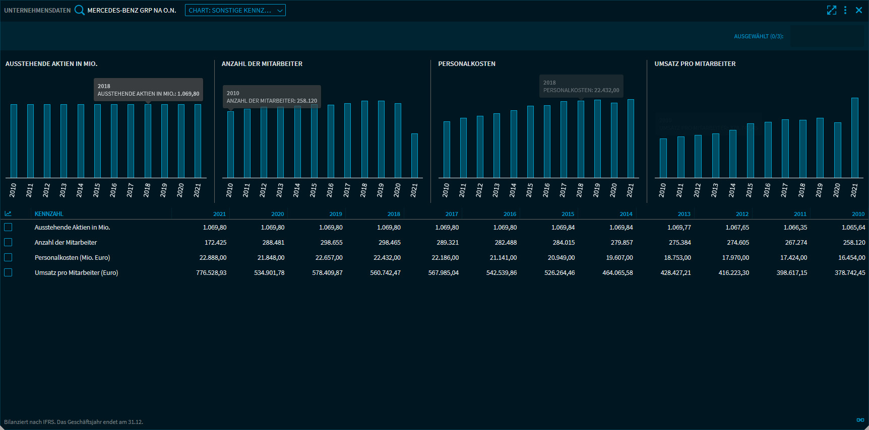 Wählen Sie den Bereich "Chart: Sonstige Kennzahlen", um die folgenden Kennzahlen der letzten 10 Jahre sowohl als Tabelle als auch als Diagramm anzuzeigen: