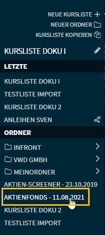 Wertpapiere aus Screener als neue Kursliste anlegen
