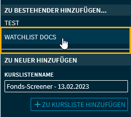 Wertpapiere aus Screener zu bestehender Kursliste hinzufügen