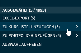 - Markieren Sie die zu exportierenden Wertpapiere in der Ergebnisliste.
