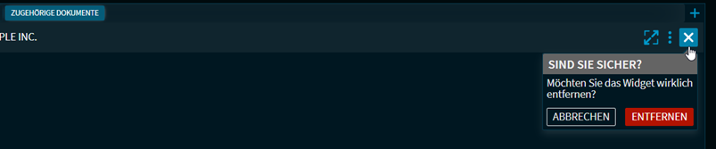 Wählen Sie das Entfernen-Icon oben rechts im Widget.