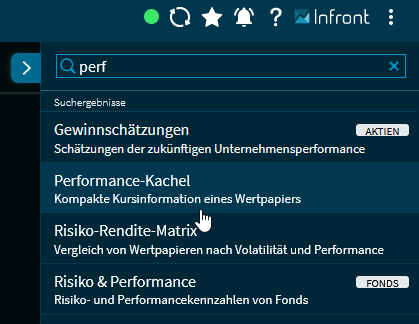 Ist ein Widget in den Standard-Widgets eines bestimmten Wertpapiertyps einsortiert, dann wird auf der rechten Seite der Suchergebnisse die Widget-Kategorie angezeigt.