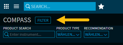 Search and filter functions are available in the upper area on the left-hand side of the Compass, which allow you to narrow down the values in the recommendation list. Use the "Filter" button to show and hide the filter area.