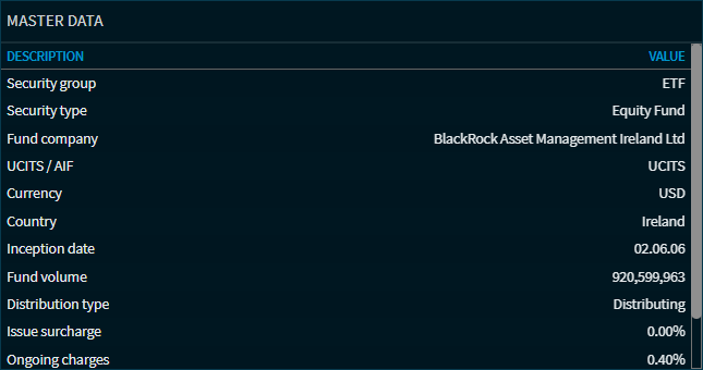 | Fund volume | The fund volume of the ETF or fund. |