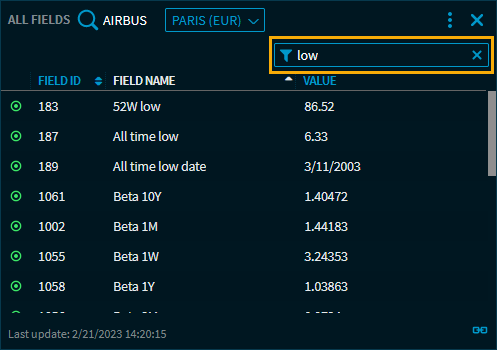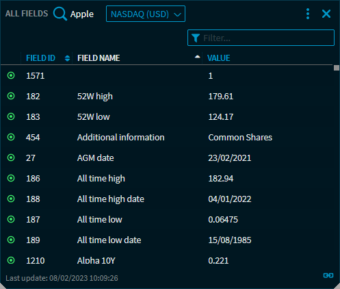 In this widget, all data fields for a security are shown in one place.