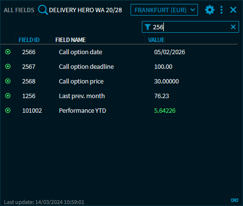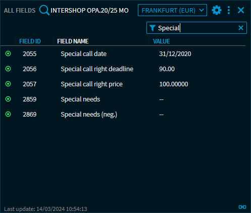 In the "All fields" widget, information on bond cancellation rights, if available, is now available.