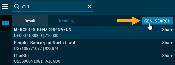 In the (general) search, the securities databases are searched for hits. To start a search: