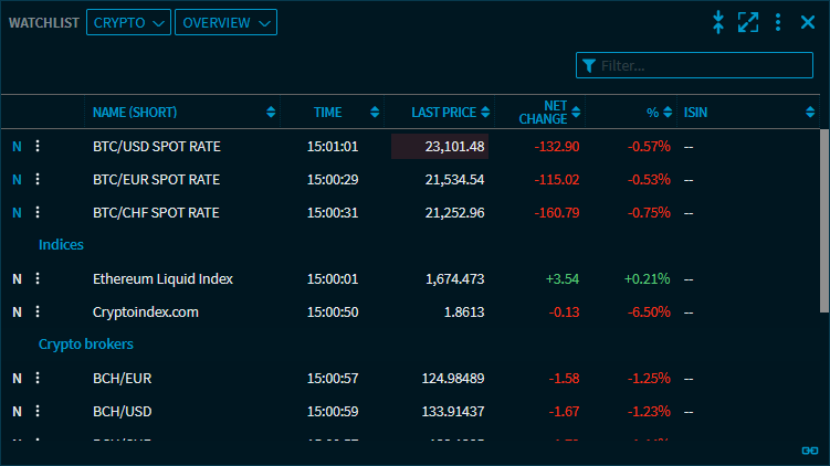 The settings of this view allow you to configure the number of securities to be displayed (from 2 up to a maximum of 20 securities).