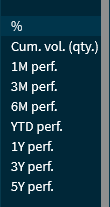 The drop-down list above the risers and fallers allows you to select different criteria like performance intervals or volumes.