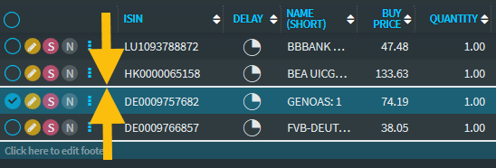 | If you selected a single position in the portfolio, you can use this icon to add a separator above the selected position and enter any text. To remove an inserted separator, select the position below, and then click this icon.