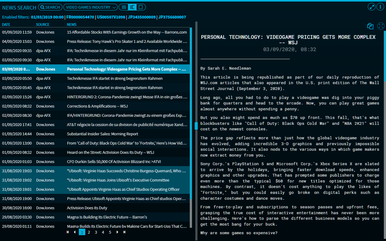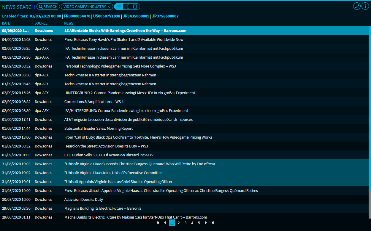 | Column view (default setting) With this setting, the widget displays the headlines of incoming news on the left side and the corresponding news texts on the right side.