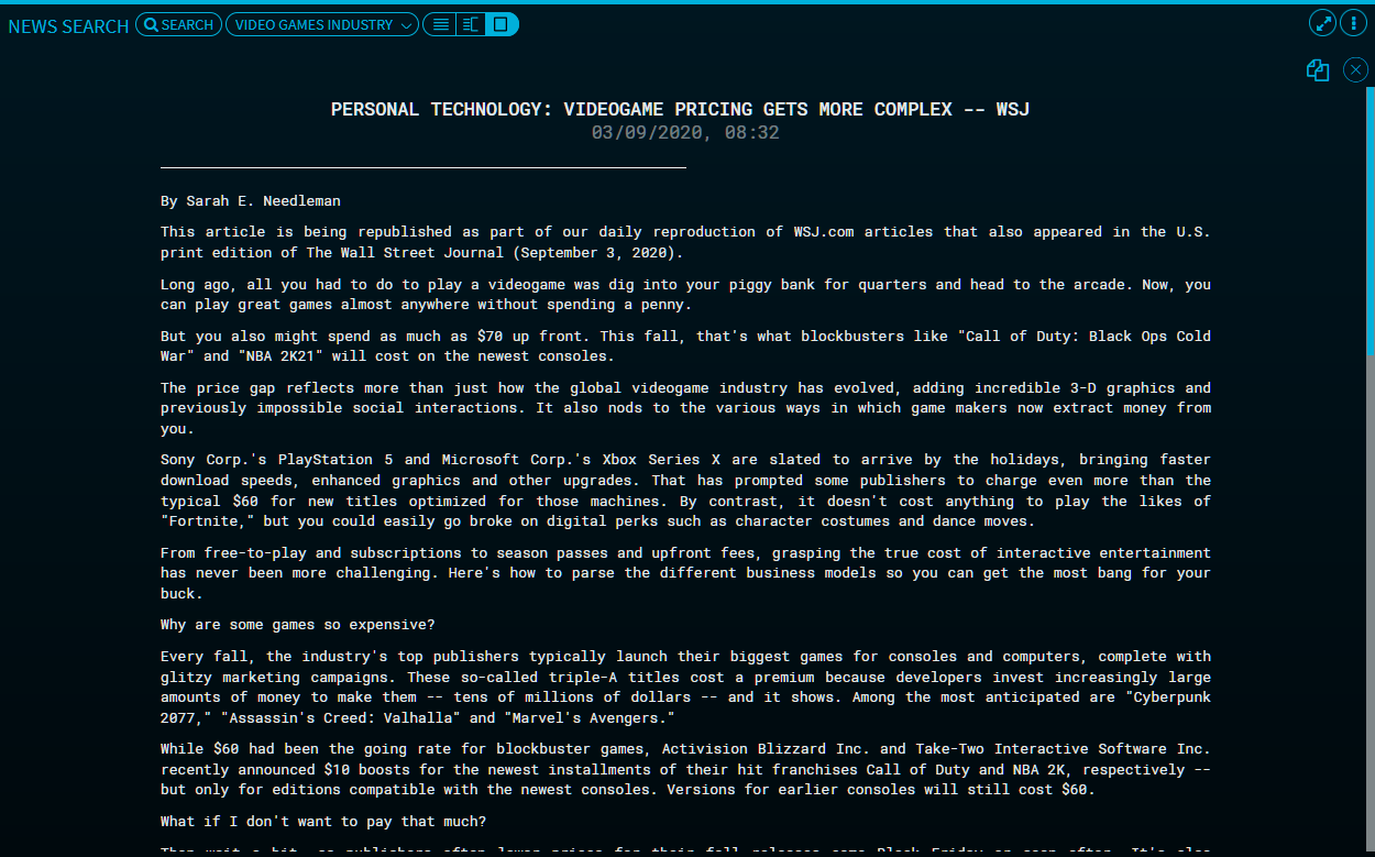 | Text view You can also use this icon in the upper right corner of the news text to display the news text across the entire widget. |