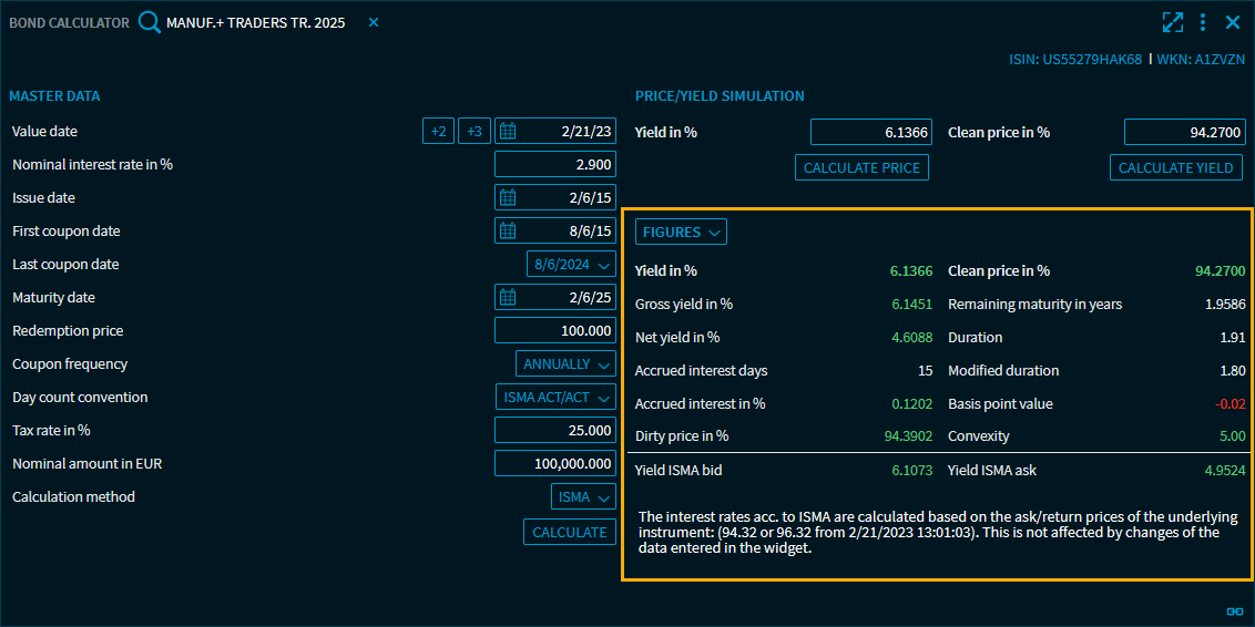 "Results" area in the Bond Calculator