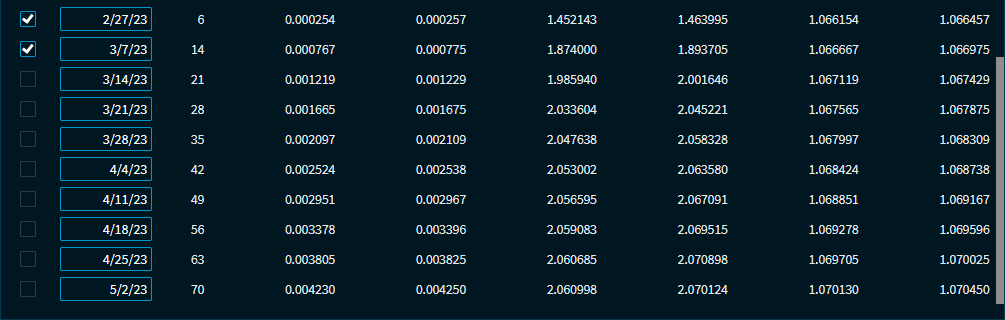 Swap % Bid | The bid price of the swap in percent at this value date for the selected currencies. |