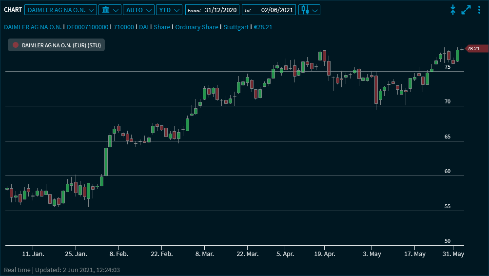 These colours are the familiar standard settings for candlestick charts. You can change these candle colours individually in the "Chart Analysis" widget.