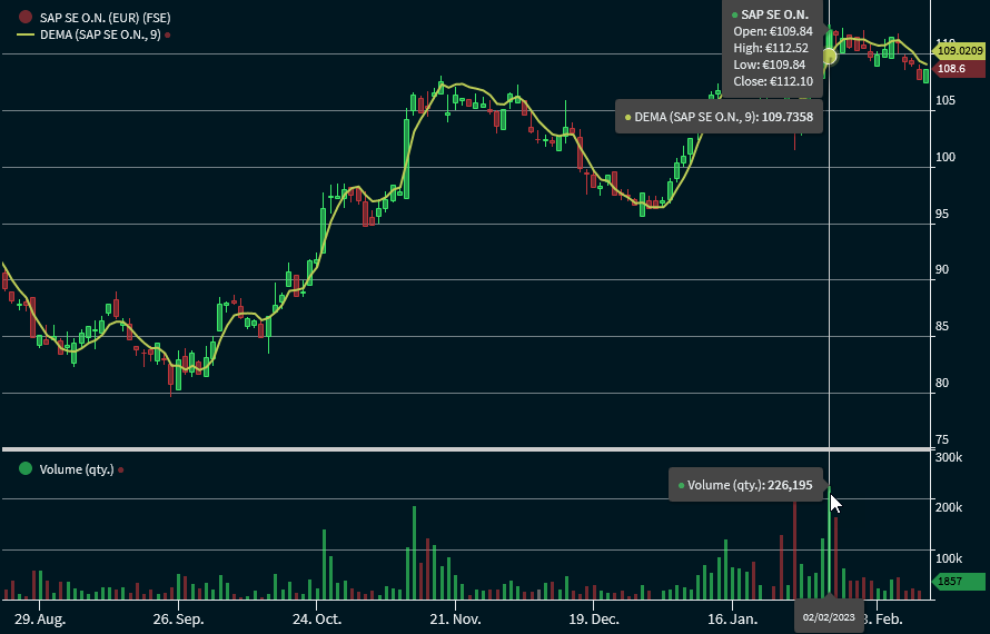 The DEMA supports traders in the early detection of a trend reversal. In practice, the indicator is used in combination with the MACD and Triple Exponential Moving Average.