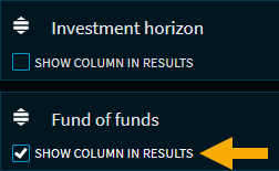 In the "Result settings" dialogue window that appears, specify the columns displayed in the results list.