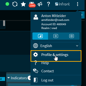 In Infront Investment Manager, you can view and configure the current profile and program settings. Manage your personal information that Infront stores. The name specified here is necessary to share dashboards and news with other users, for example.