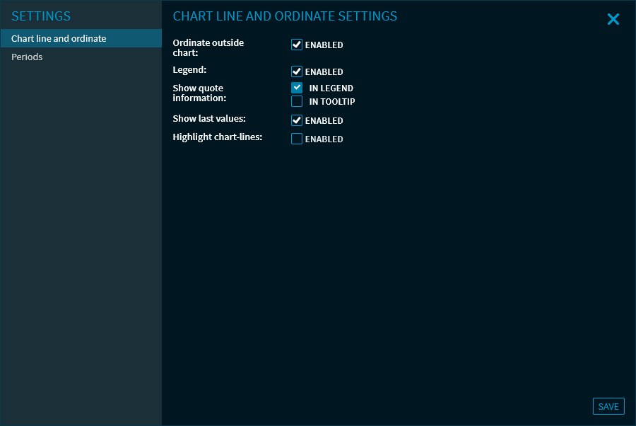 Highlight chart line | Select this checkbox to switch on the "highlighting" of the chart lines (when pointing to the lines in the chart or in the legend). This setting is disabled by default. |