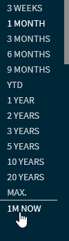 The defined and saved time periods are then available for selection in the widget in the drop-down list of time periods. The user-defined periods are added at the bottom of the drop-down list.
