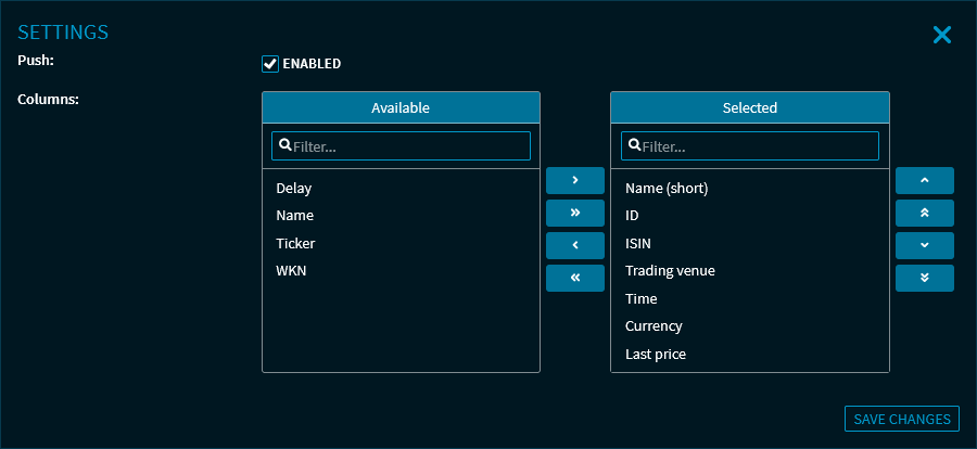 - Enable or disable the push data feed