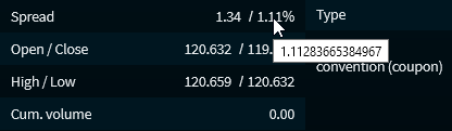Chart | On the right side of the "Full Quote" widget, you see a small intraday chart of the currently selected security. Point to a chart line to view the price details. ![]() |