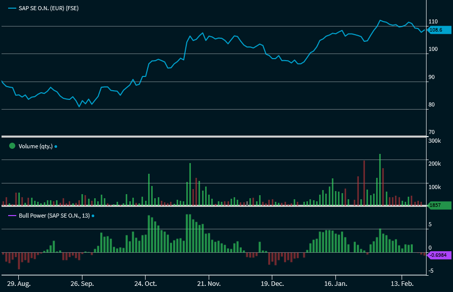 The interpretation is primarily based on the search for divergences between the actual share price performance and the two elder-ray indicators. A negative signal is generated when the underlying is still climbing new highs while the indicator is not climbing any new highs. A positive signal is generated when the actual price trend is still establishing new lows but the indicator is no longer establishing new lows.