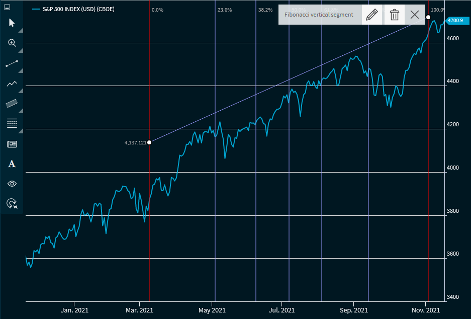 - From the "Fibonacci" button menu, select the "Fibonacci vertical segment" entry.