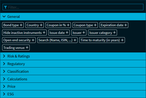 The following filters are available for your bond screens: