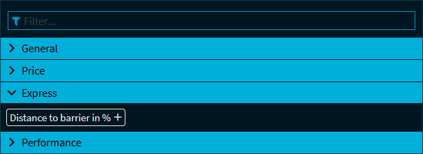 In addition to the filters described in Filters in certificate screens (security group "All"), the following filter is available for express certificates: