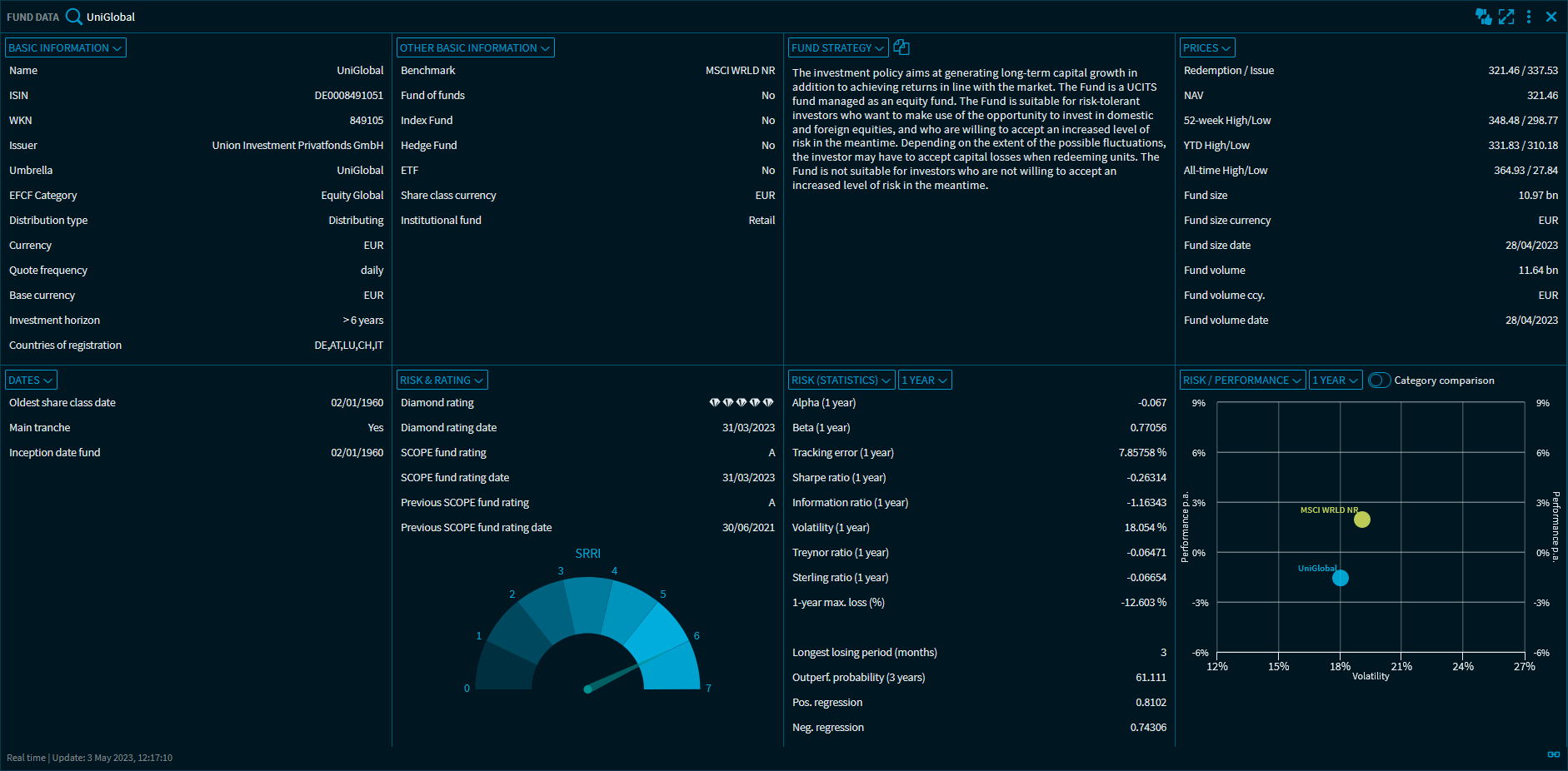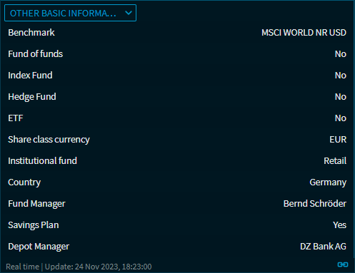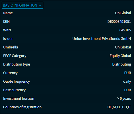 With the corresponding activation, the widget "Fund data" with the following views for the analysis of funds is available to you: