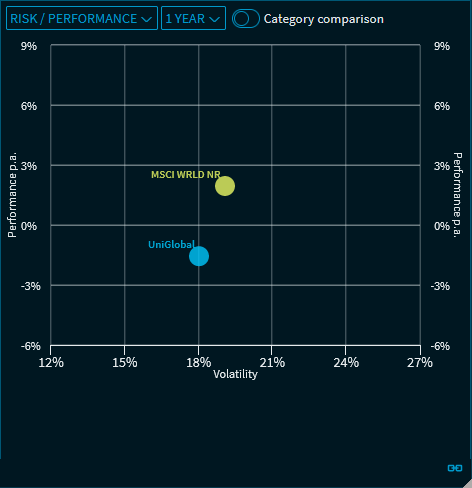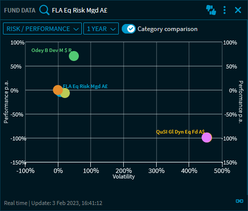 Drag the "Category comparison" button to the right to display the funds with the highest and lowest volatility and performance values in the category: