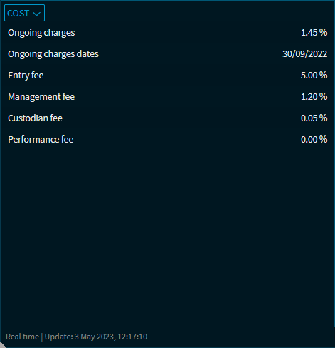Fields for which no data is available for the currently selected fund are hidden. Possible costs: