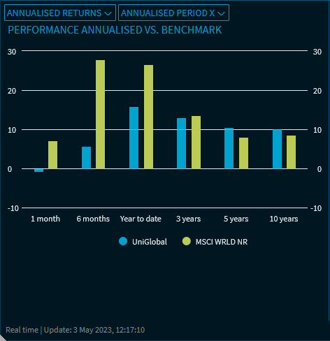You can select the following entries for the chart by using the drop-down list in the "Annualised returns" view: