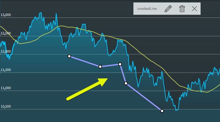 - Drag the second part of the line in the corresponding direction and location, and then click again to set the end point of the Elliott lines (B) and so on.
