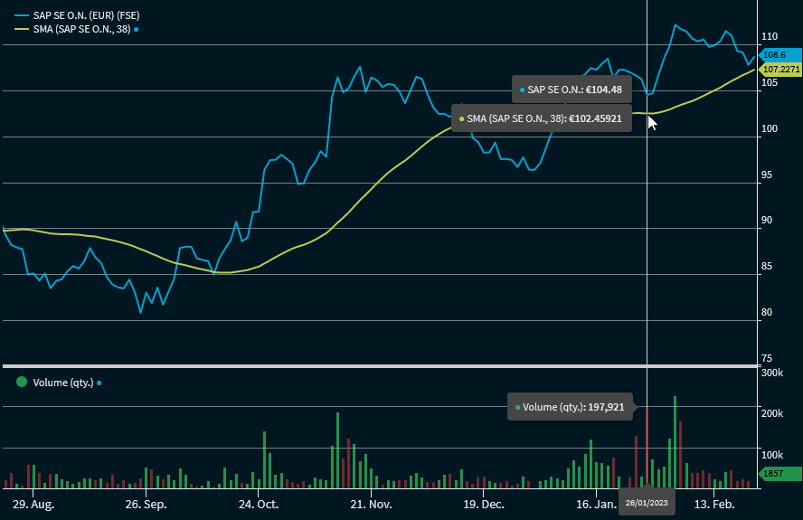 Moving averages are among the oldest and by far the most widely used indicators. As a rule, they are abbreviated with "MA". MAs can be calculated in very different ways and can be used in many different ways. In addition to many independent analyses, many other indicators are also based on MAs. MAs form the basis of most technical analyses.