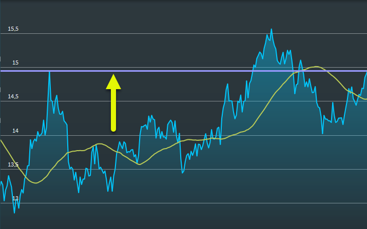 To draw a horizontal line, open the menu of the "Lines" button, select the "Horizontal line" entry, and then click in the chart.