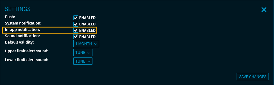 - When configuring or editing your alerts, select the "In-app notification" checkbox in the "Notifications" area and save the settings.