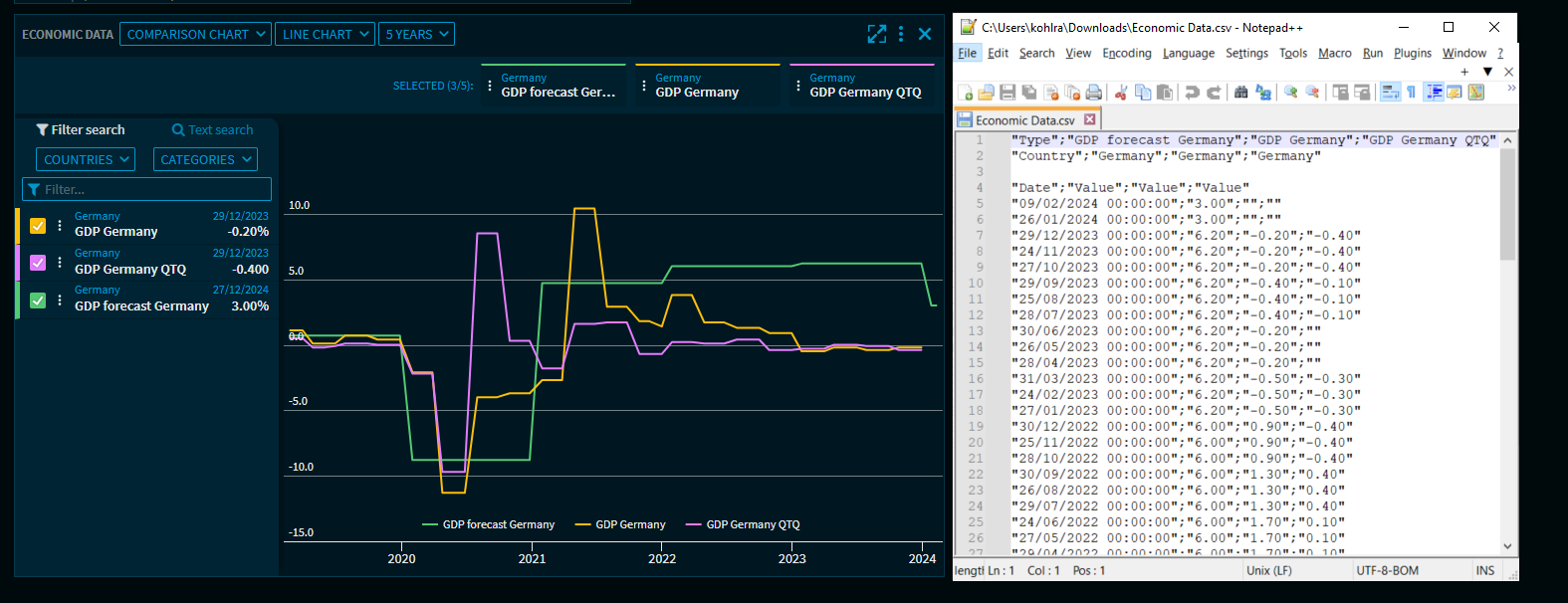 The "Economic Data" widget now supports the CSV export of the historical data.