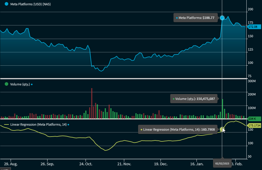 Linear regression is used to determine trends. The prices are used as dependent variables and the time as independent variables. By using the Least Squares method, a straight line is drawn through the course of the price so that the distance between the price and the line is minimal. With this method, a trend between two points in time can be quantitatively represented. After the calculation, the regression line is in the middle of the price trend. The Linear Regression Indicator displays the end values of multiple linear regression trendlines. Each point along the indicator is a final value of a linear regression trendline. The result is similar to the moving average. However, unlike a moving average, the resulting line of the Linear Regression Indicator has less delay.