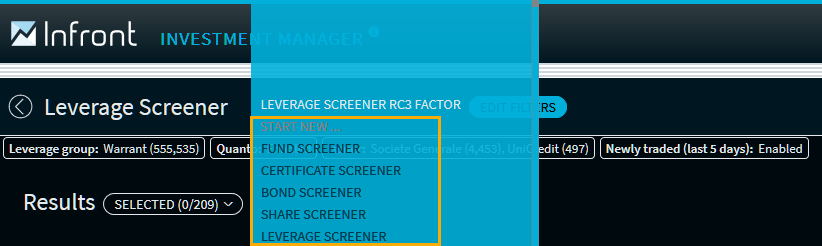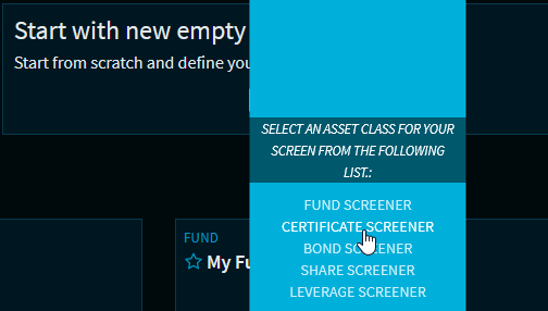 If you are on the screener start page, proceed as follows to create a new screen for a security type