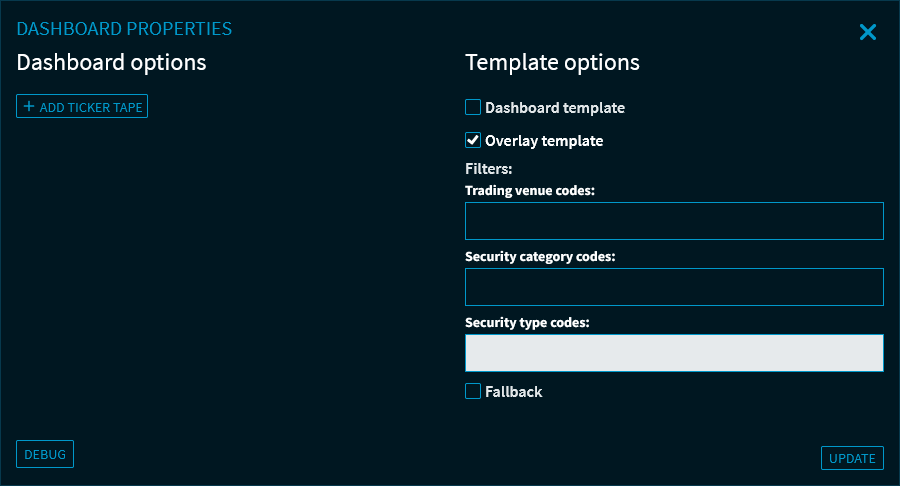With this button, you can embed a Ticker tape at the top of the dashboard.