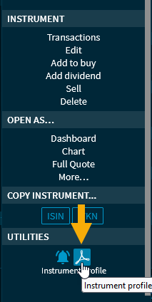 "Instrument profile" icon in the menu of the instruments of a watchlist or portfolio