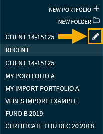 - Then, in the list of recently opened portfolios, click the "Edit portfolio" icon for your current portfolio again (or select another portfolio to edit, if necessary).