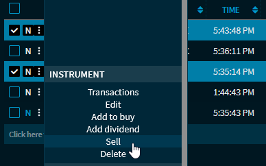 In the position overview, open the menu via the menu icon in the row with the position to be sold and select the SELL INSTRUMENT command.